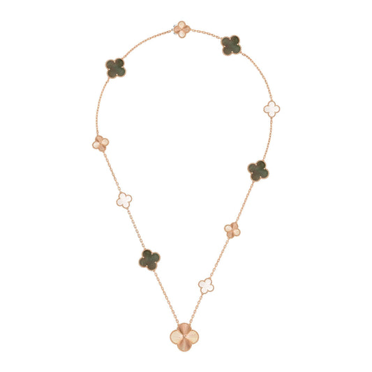 [NOBLE AURA]CLOVER 10 MOTIFS MALACHITE NECKLACE